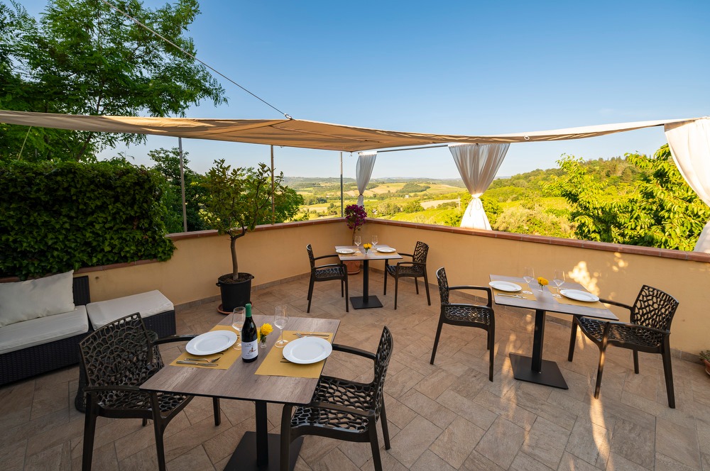 Surrounded by vineyards and olive groves, among the beautiful hills that characterize the classic Tuscan landscape, Upper Country Relais Tuscany La Loggia di Giulia is located between two of the most splendid and famous medieval villages of Siena and the Elsa Valley: San Gimignano and Certaldo.
